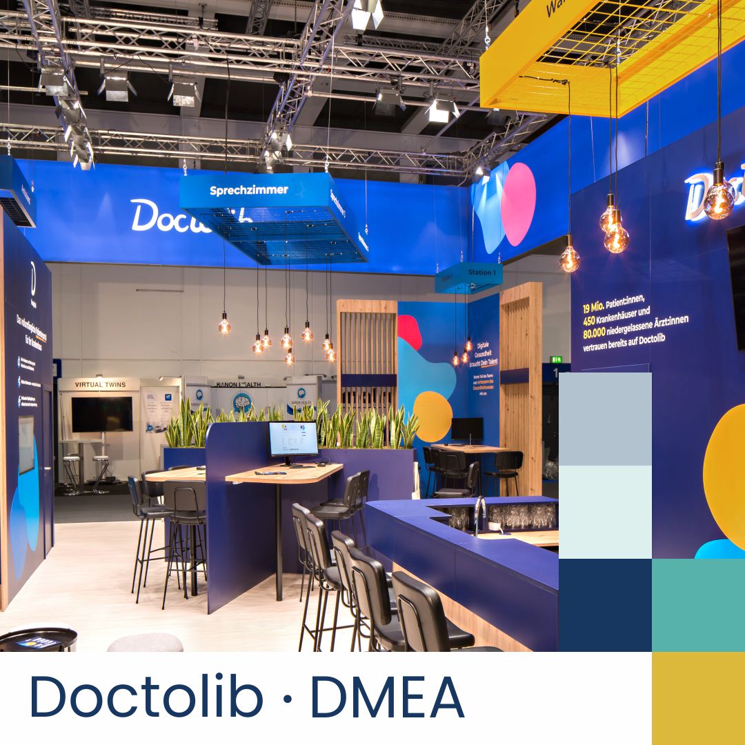 We created an impressive 120 m² stand for our client Doctolib at the DMEA Congress in Berlin, which is considered Europe’s most important trade fair and congress for digital healthcare.