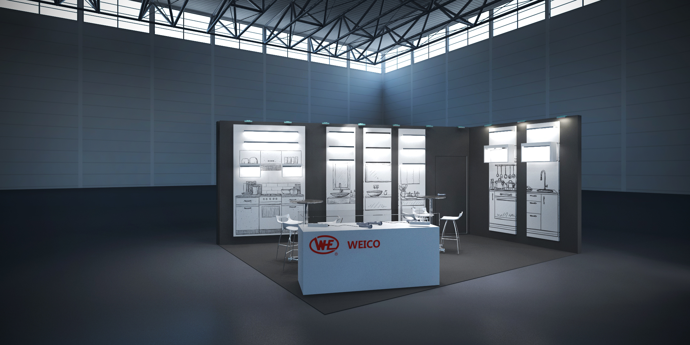 While the color white dominates metalogic’s stand, WEICO Europe presents itself in timeless anthracite.