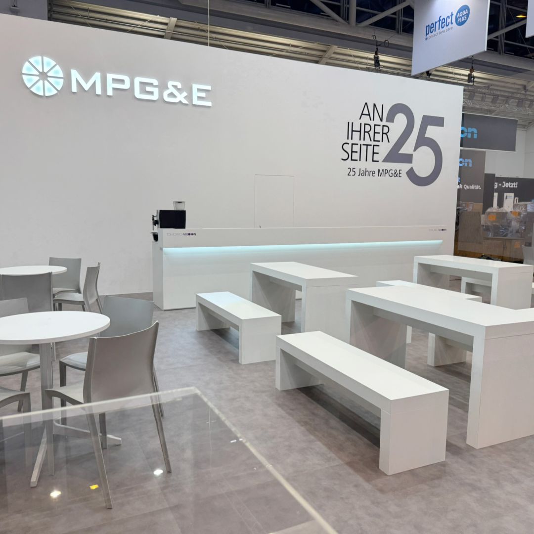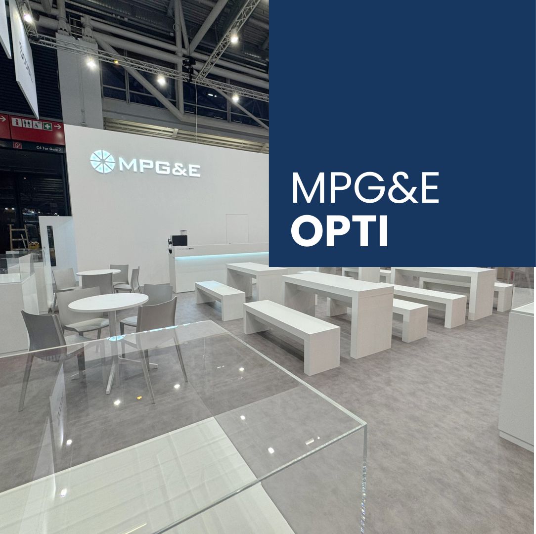 We created an impressive 121 m² stand for our MPG&E at opti – clean, modern and bright white.