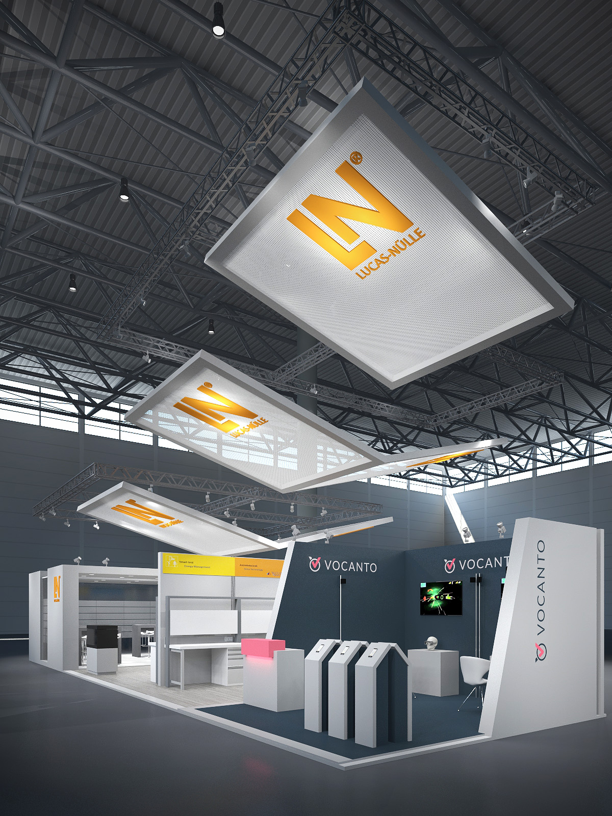 Mit einem eindrucksvollen, offenen Standkonzept zieht unser Kunde ganz sicher viele Blicke auf sich.