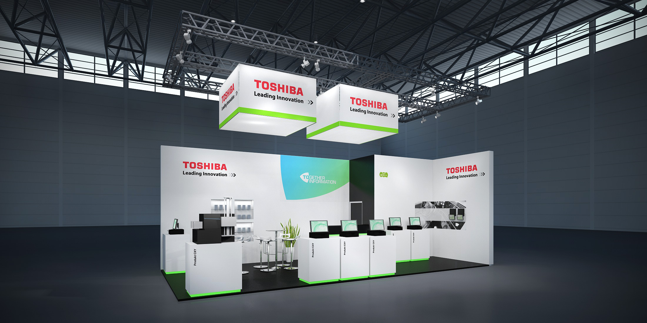 Exponate und Maschinen erlebbar machen war das Motto. Und so konzipierten wir für die Firmen Quandel Verpackungs- und Fördertechnik GmbH, Schäfer + Flottmann GmbH & Co. KG, K. Grote GmbH und TOSHIBA GmbH einzigartige Markenarchitekturen.