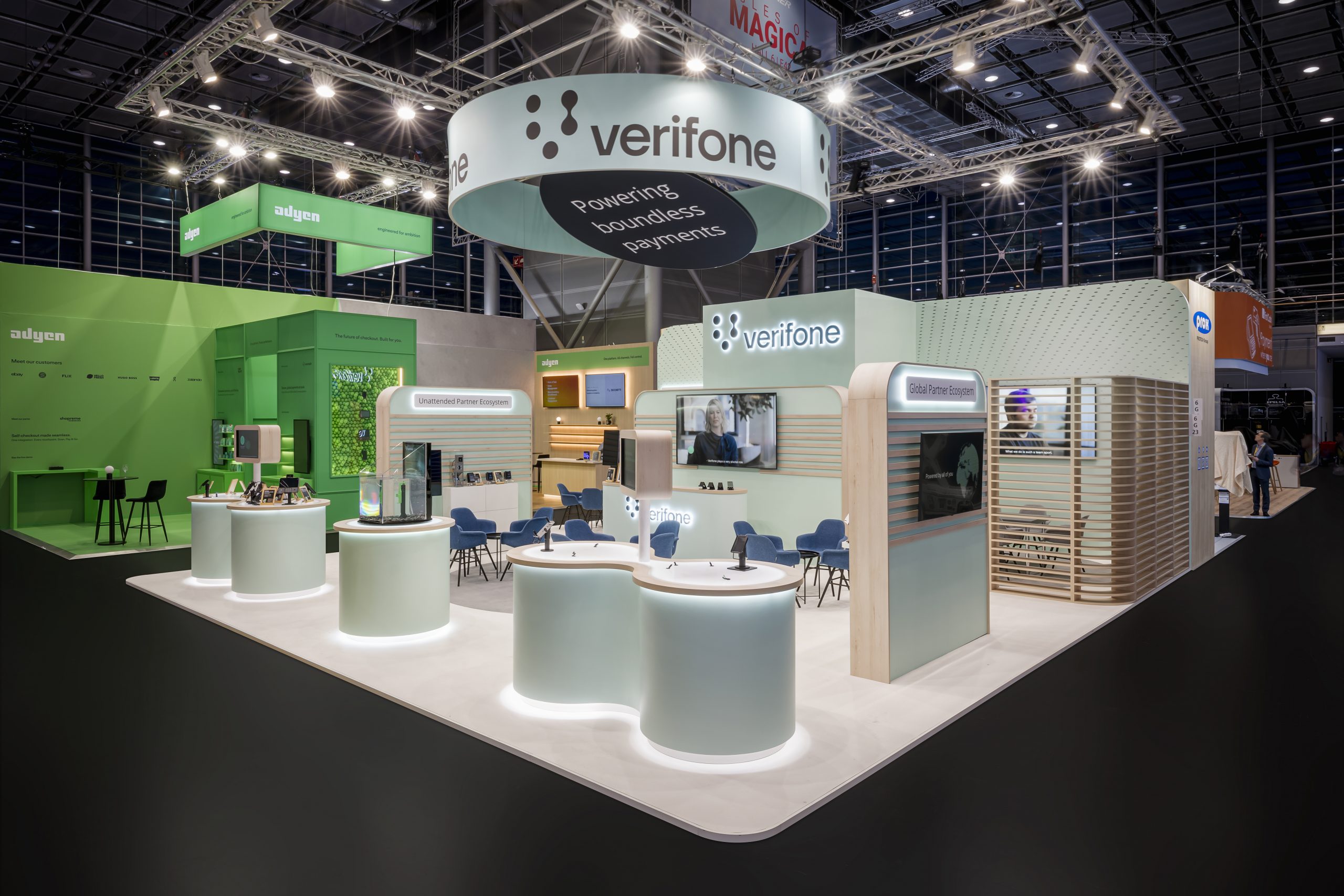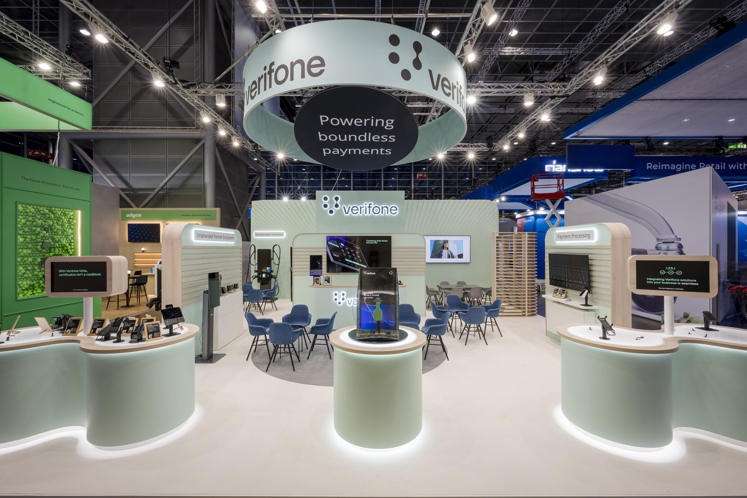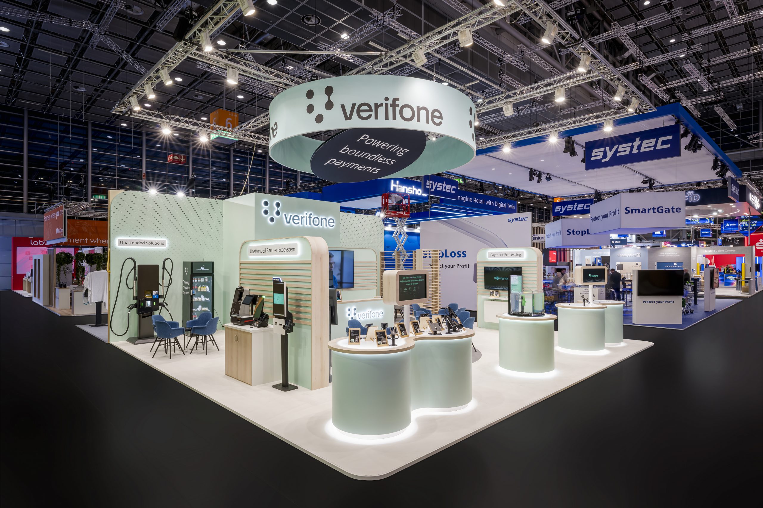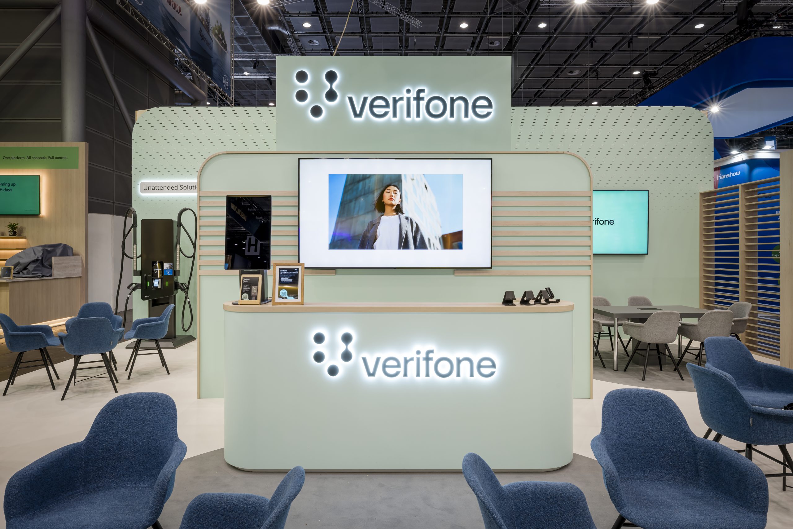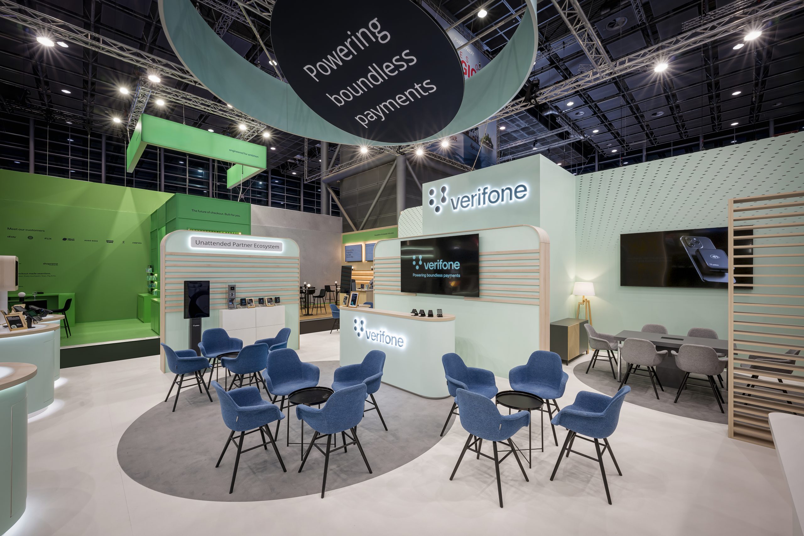 Das Konzept setzte auf ein einheitliches Farbdesign, das die Markenwelt von Verifone klar und hochwertig widerspiegelt.